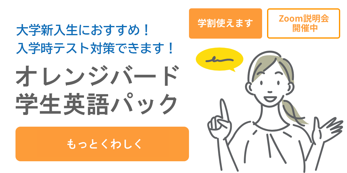 ®TOEIC and ®TOEFL are registered trademarks of Educational Testing Service (ETS). Products and services sold by Orangebird are not endorsed or approved by ETS. Orange Bird 株式会社オレンジバードは北海道大学認定スタートアップに認定されています。 Hokkaido Prefecture, Sapporo, Kita Ward, 5-chōme-2-22 Kita 18 Jōnishi, 001-0018 011-299-6536 個人情報保護方針 特定商取引法に基づく表記 © Orange Bird Inc.